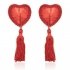 Urocze nakładki na biust w kształcie serca. Serca są wspaniale zdobione, a na środku przymocowano figlarny frędzelek. Nakładki są samoprzylepne, wielokrotnego użytku. W zestawie dwie sztuki.